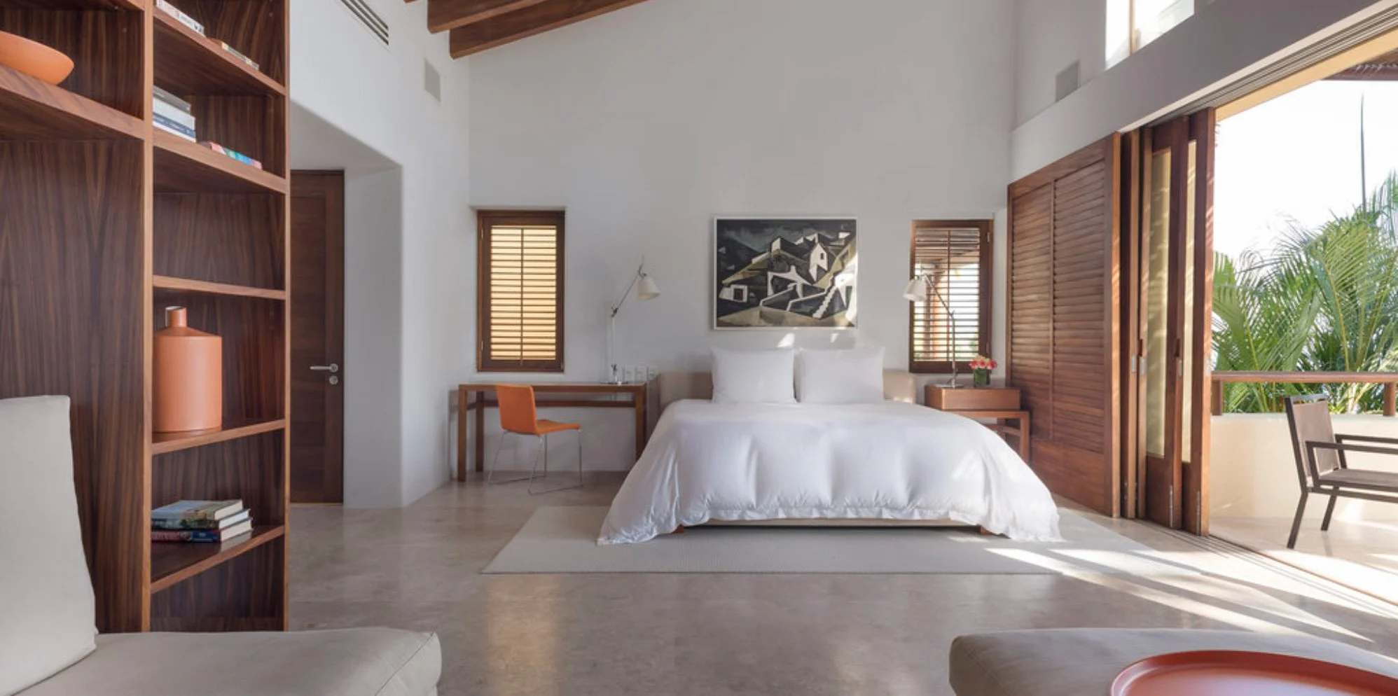 Main Bedroom – King bed, en-suite bathroom, outdoor shower, ocean views, sitting room, office terrace